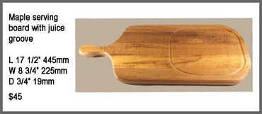 Cutting boards and serving boards are finished with food safe beeswax.